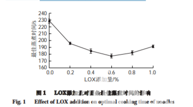 2.1 LOX添加量對面條最佳蒸煮時間的影響
